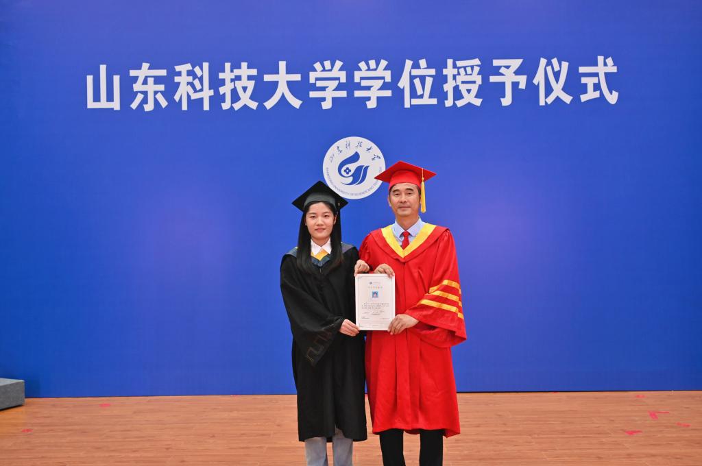 校区党委常务副书记吴正龙、管委常务副主任方亨福、管委副主任兼教务部主任贾宏俊、管委副主任兼学团工作部主任戴东宝分别为各学院学位获得者颁发学位证书,与毕业生合影留念并向毕业生送上美好祝福。(教务部供稿)