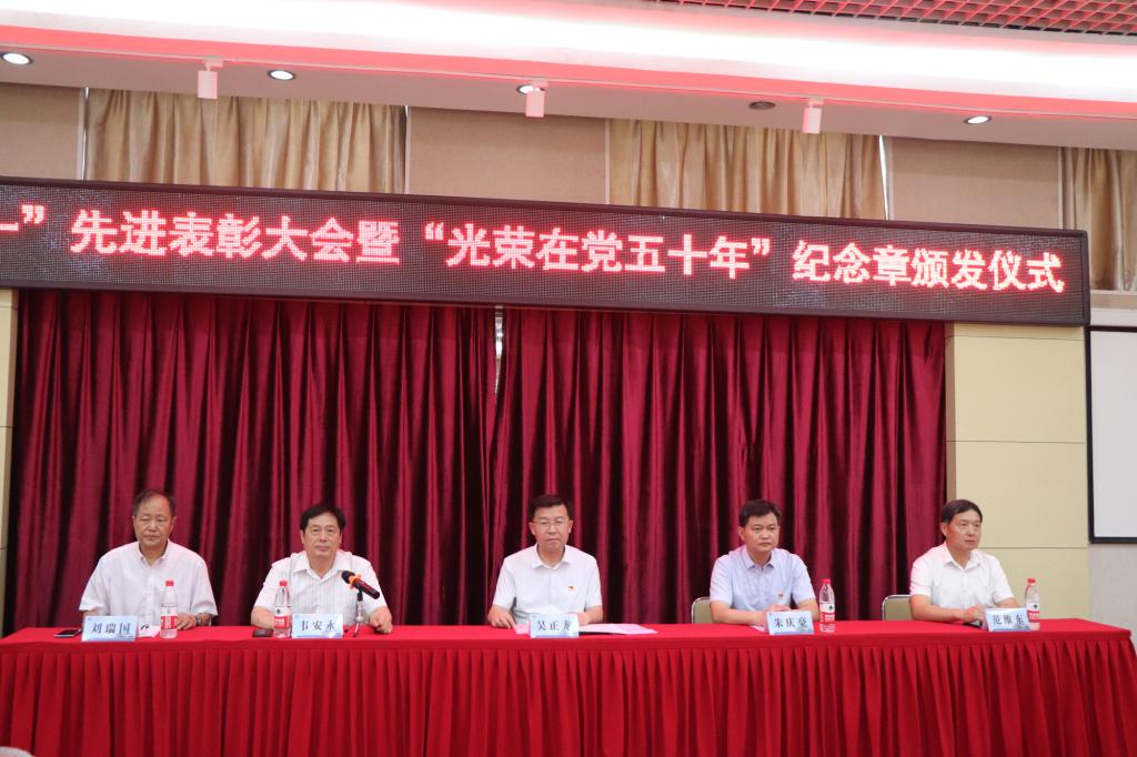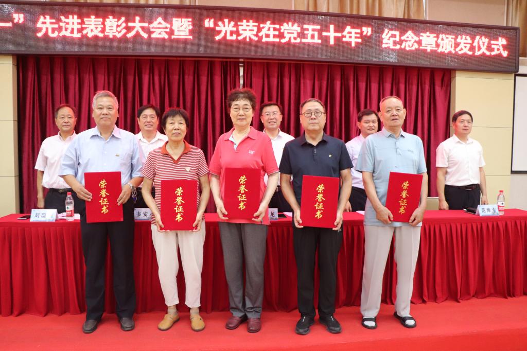 6月28日,离退休工作处党委“七一”先进表彰大会暨“光荣在党五十年”纪念章颁发仪式在校区离退休职工活动中心举行。校区党委常务副书记吴正龙、管委副主任兼党政办公室主任朱庆豪出席会议。离退休工作处党委书记韦安永主持会议,离退休工作处相关负责人及近百名离退休党员代表参会。