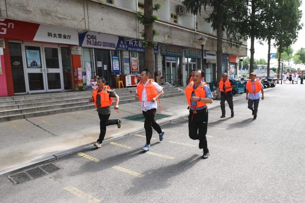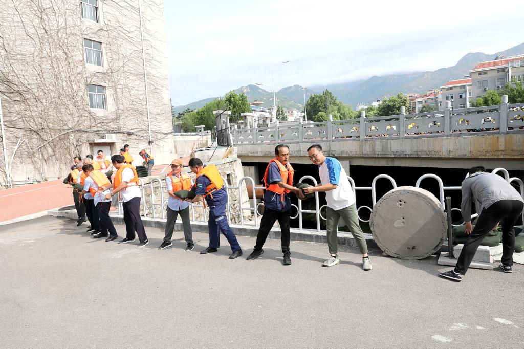 为检验防汛抢险反应能力,提高各防汛单位协同作战能力,确保汛期师生员工生命财产安全,根据上级有关防汛要求,7月5日,校区组织防汛抢险应急演练。校区管委副主任兼后勤管理部主任逄杰文担任演练总指挥,相关部门负责人和工作人员50余人参加演练。