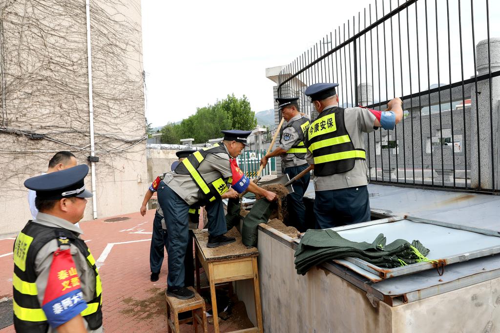 演练地点安排在东校园东门、3号和5号教学楼、东围墙等防汛要害部位,演练背景为连续强降雨导致梳洗河水位大涨,出现严重洪涝灾害。防汛指挥部接到报告后,紧急会商,启动应急预案,并立即向泰山区防汛指挥部报告。同时安排值班人员通知防汛抢险大队全体队员集结,各相关单位迅速赶到现场,由总指挥下达命令后各小组分头开展抢险救灾工作。