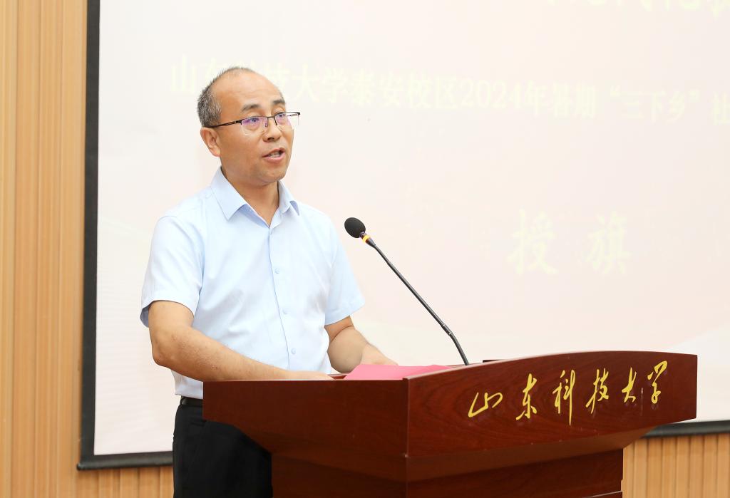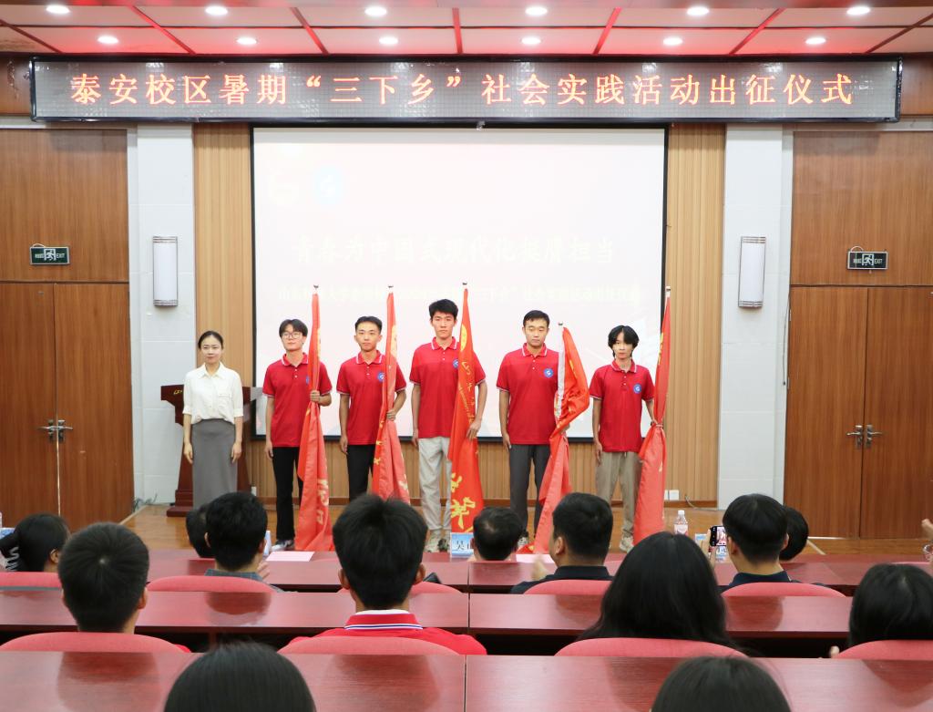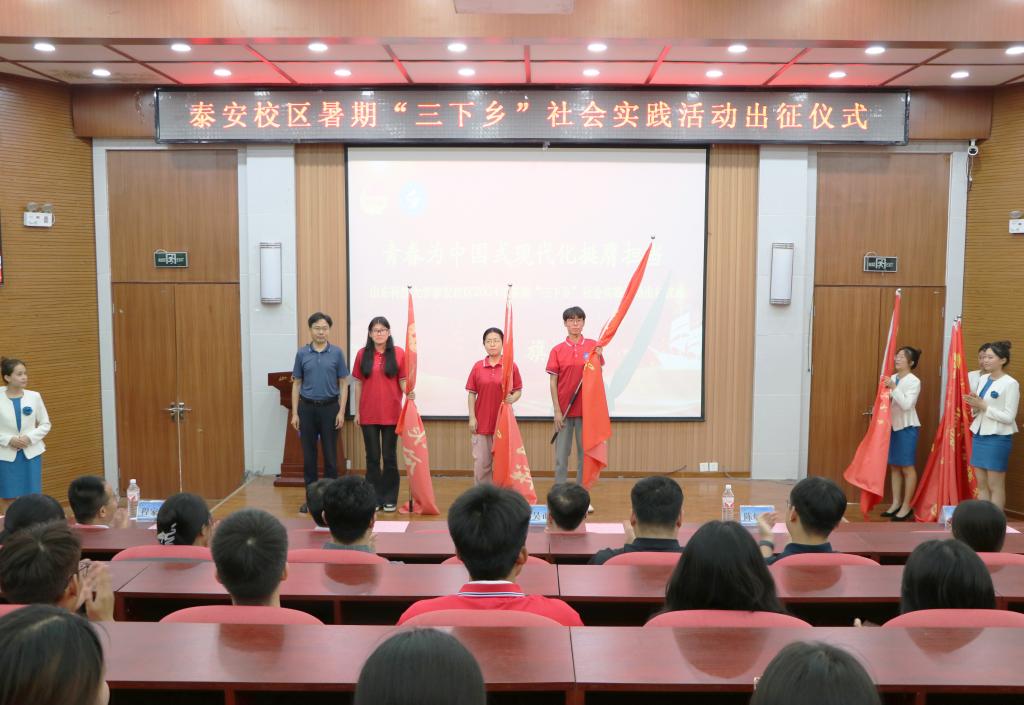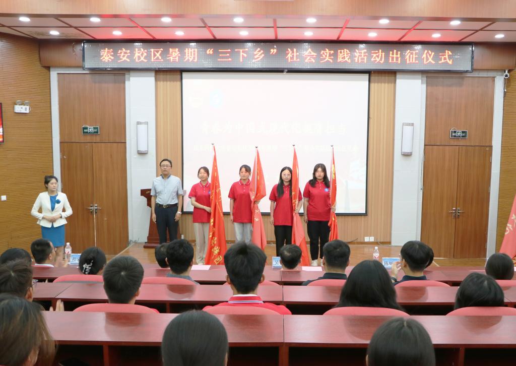 7月11日,泰安校区2024年大学生志愿者暑期“三下乡”社会实践出征仪式在西校园八角楼报告厅举行。校区党委常务副书记吴正龙,校区管委副主任兼党政办公室主任朱庆豪,各学院相关负责人出席活动。各学院团委书记,暑期社会实践指导教师代表,2024年校区“青马班”学员及社会实践志愿者代表近200人参加活动。