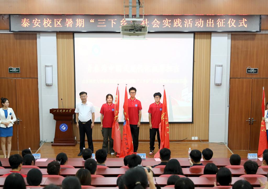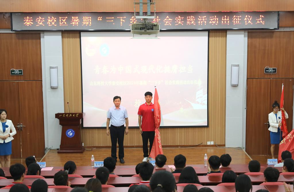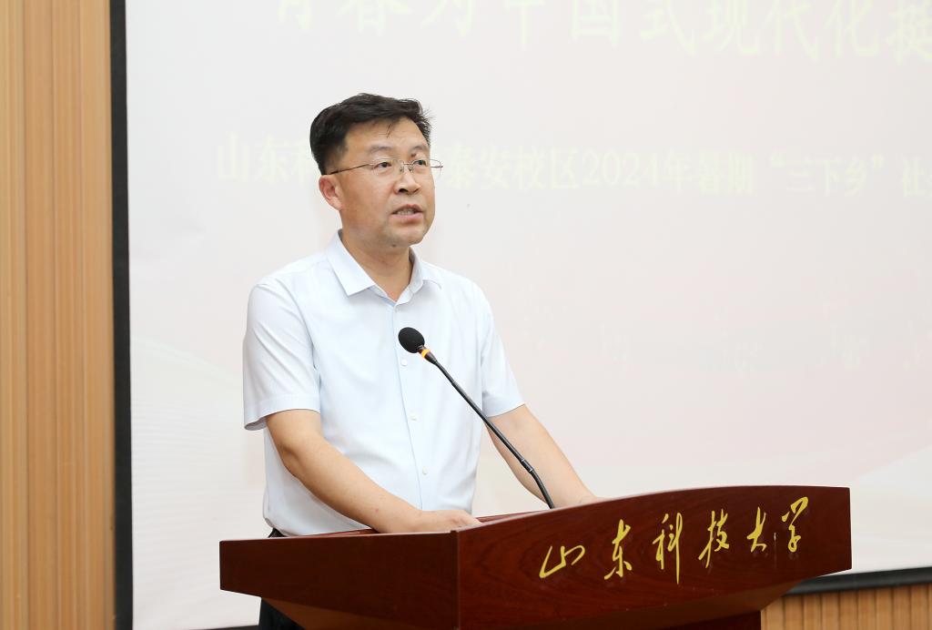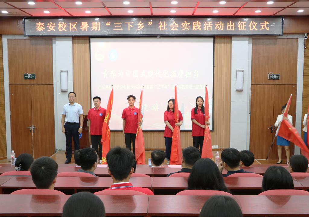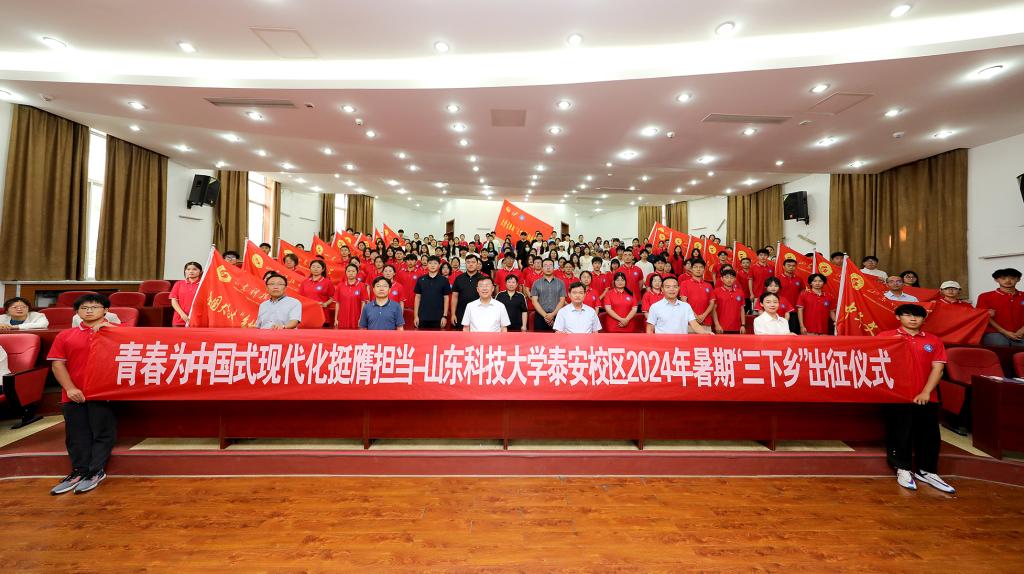 7月11日,泰安校区2024年大学生志愿者暑期“三下乡”社会实践出征仪式在西校园八角楼报告厅举行。校区党委常务副书记吴正龙,校区管委副主任兼党政办公室主任朱庆豪,各学院相关负责人出席活动。各学院团委书记,暑期社会实践指导教师代表,2024年校区“青马班”学员及社会实践志愿者代表近200人参加活动。
