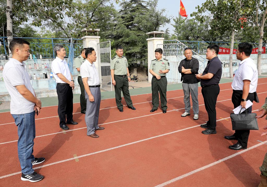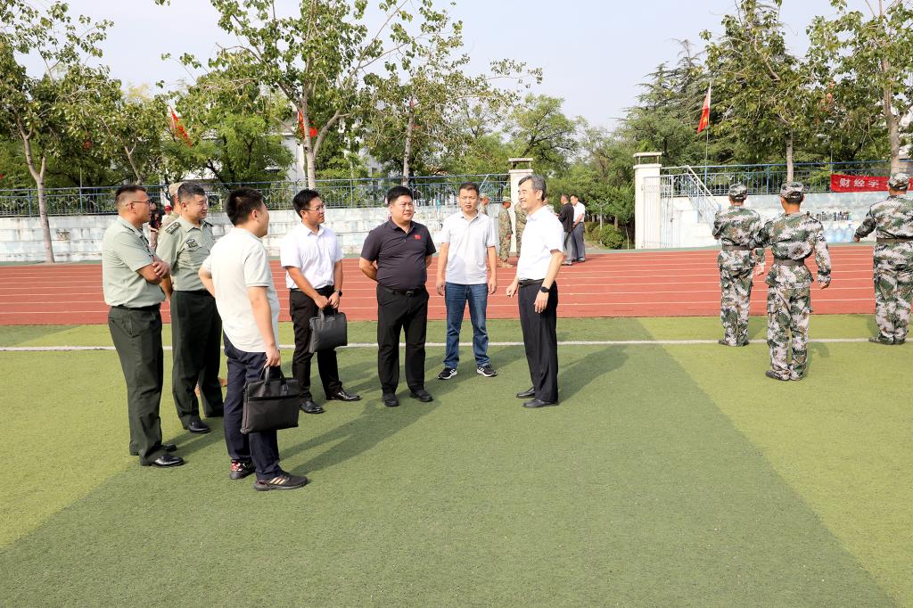 9月8日,省军区战备建设局大校副局长姚吉光、省教育厅体卫艺处副处长林乙楠等一行4人到校区检查指导新生军训工作。泰安军分区大校副司令员李巍,承训部队上校副政委于平,校区管委常务副主任方亨福,校区管委副主任兼学团工作部主任戴东宝及学团工作部相关负责人陪同检查。