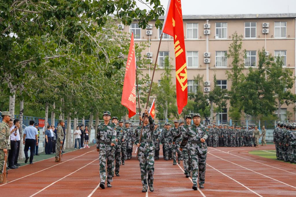 仪式上,承训部队首长于平讲话,军训学员代表吕浩然发言。