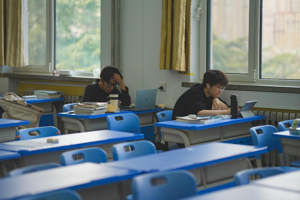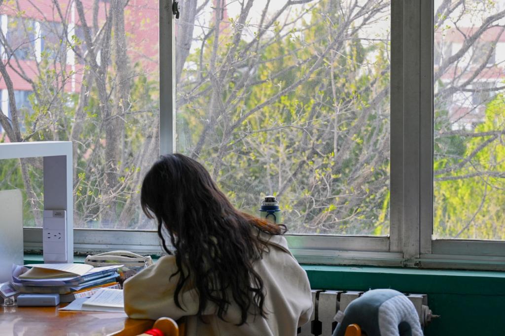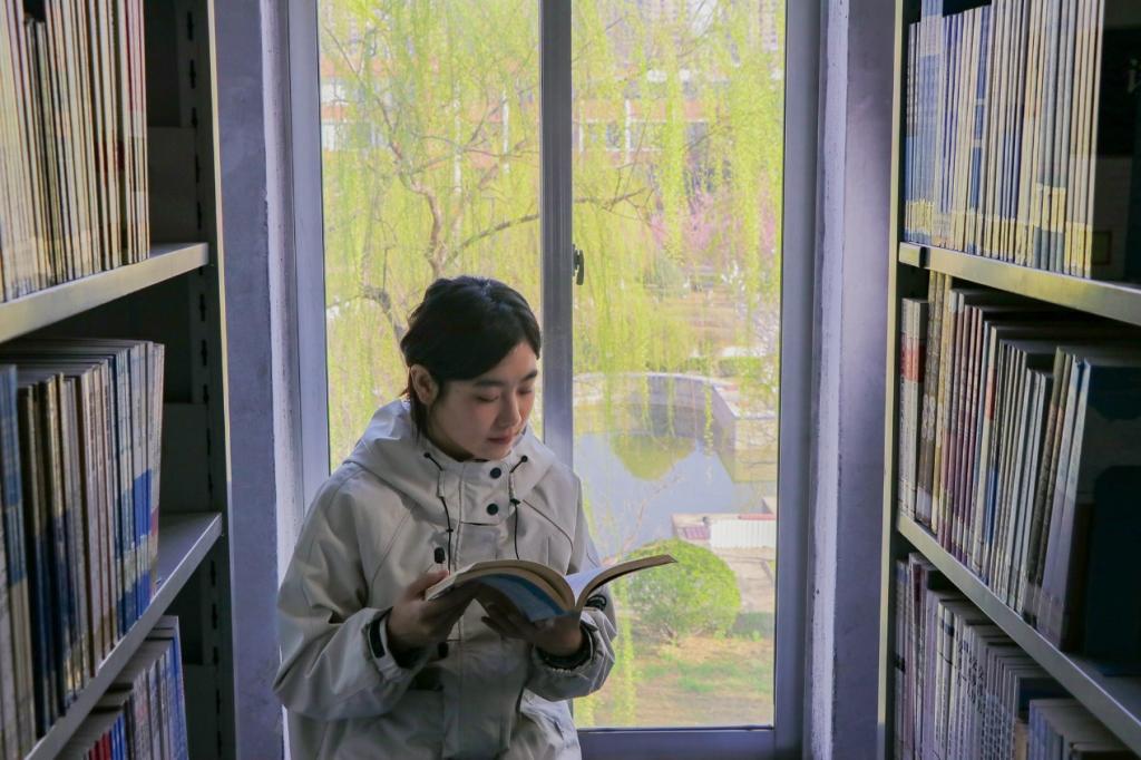图书馆里,春光正好,学子们埋头苦读,追逐梦想