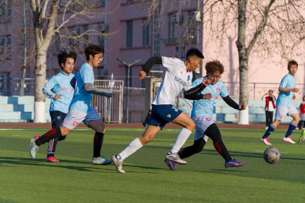 绿茵场上,微风轻拂,青年奔跑的脚步奏响春天的旋律
