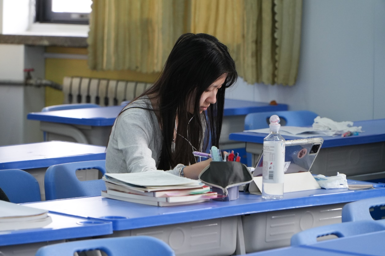 教室里,春光洒落,同学们专心学习,不负春光韶华
