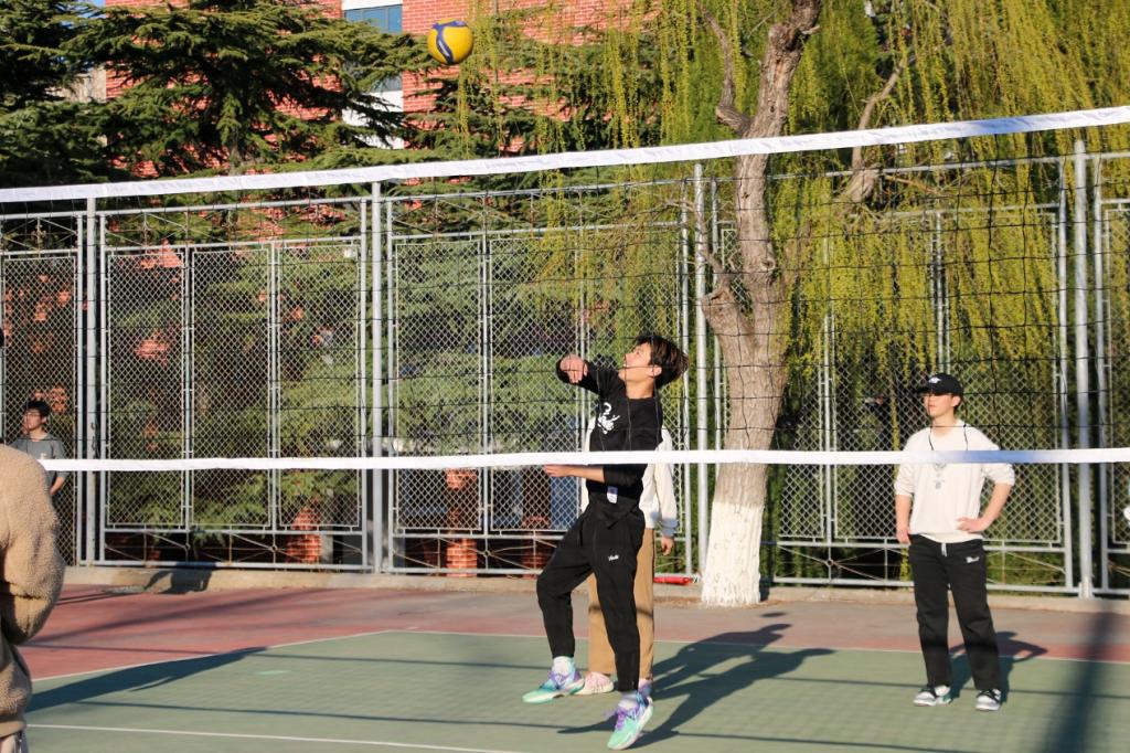 排球场上,身姿矫健,跳跃投球,春天的活力在此尽情释放