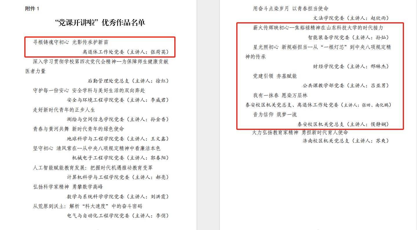 近日,学校2025年“党课开讲啦”“我和我的支部”优秀作品获奖名单揭晓,校区各中层党组织推荐的6部党课、4部“我和我的支部”作品获评优秀作品。