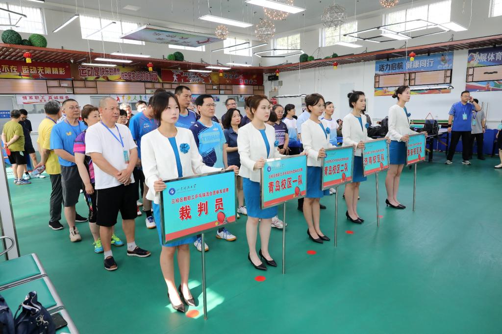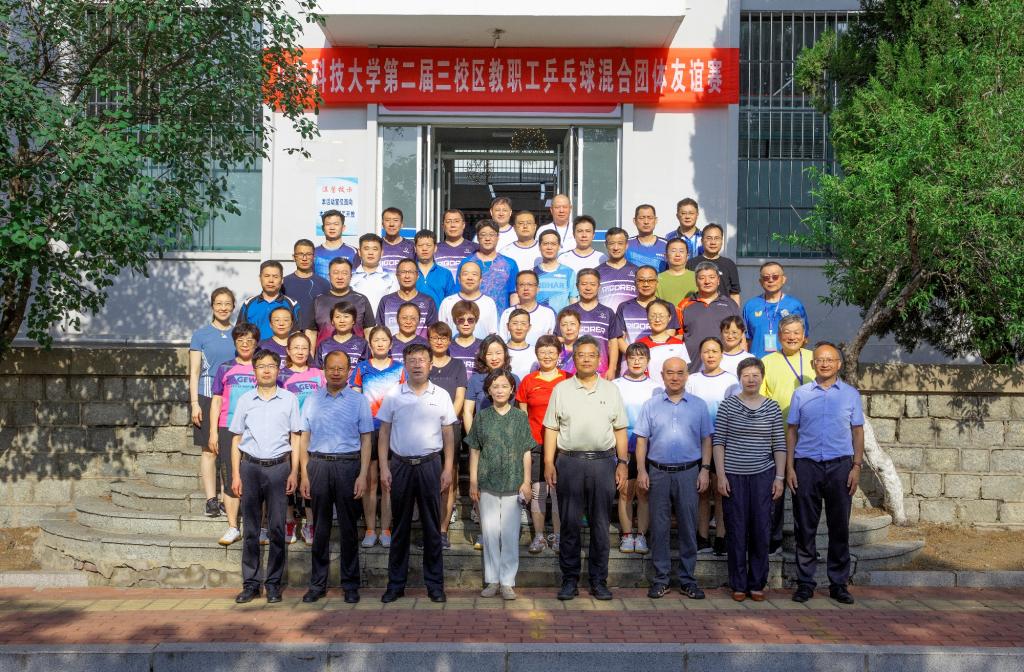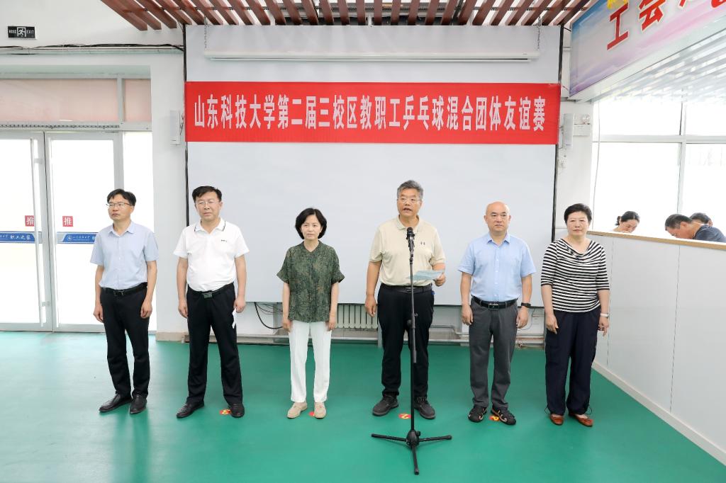 7月5日,3044永利集团官网第二届三校区教职工乒乓球混合团体友谊赛在泰安校区举行。校党委副书记郭益灵,校工会主席李双立,泰安校区党委书记吴正龙,济南校区党委书记梁赛江、主任郭加书,泰安校区教职工乒乓球协会会长、财经学院党委书记陈炳志等出席开闭幕式。来自青岛、济南、泰安三校区的教职工代表队齐聚一堂,以球会友,共叙情谊。