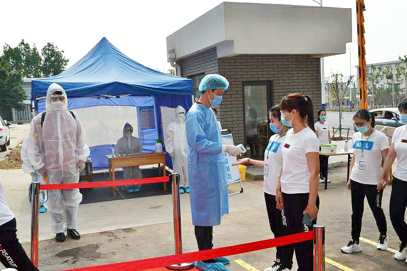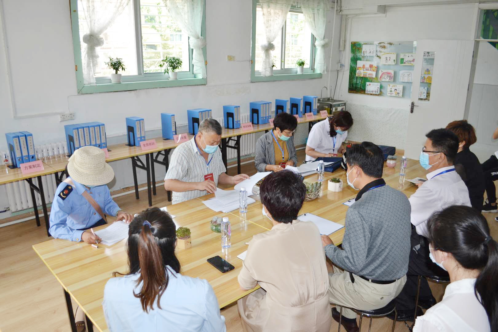 随后,检查组对临时留观室、物资储备室、食堂等关键区域进行了实地查看,并仔细查阅了防控工作档案材料,对防控工作组织保障、方案制定、全员培训、全面排查、物资保障、餐饮管理、出入管理等方面工作进行了全方位的评估验收。