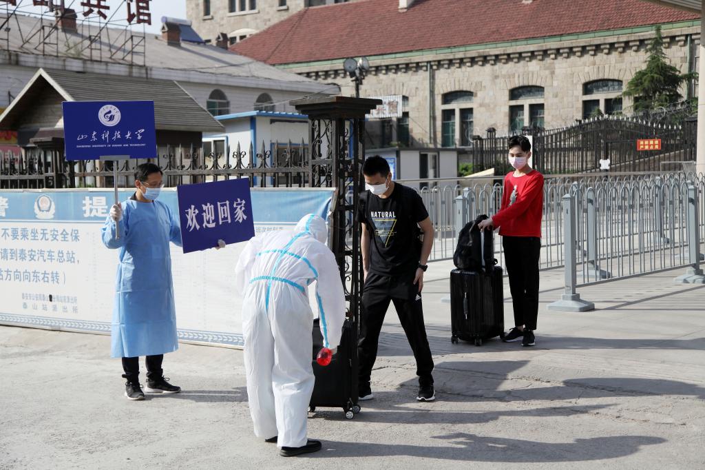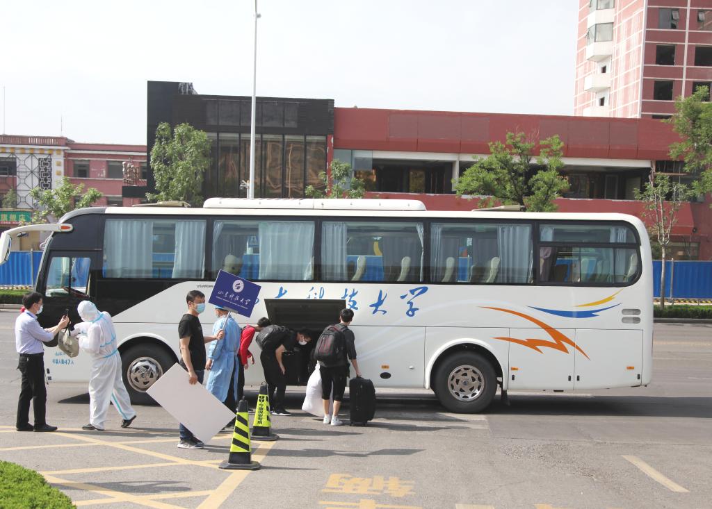 返校当日,校区在泰山站、泰安站、泰安汽车总站安排专人专门车辆迎接返校学生,并对学生依次进行身份核验、行李消毒、体温检测。