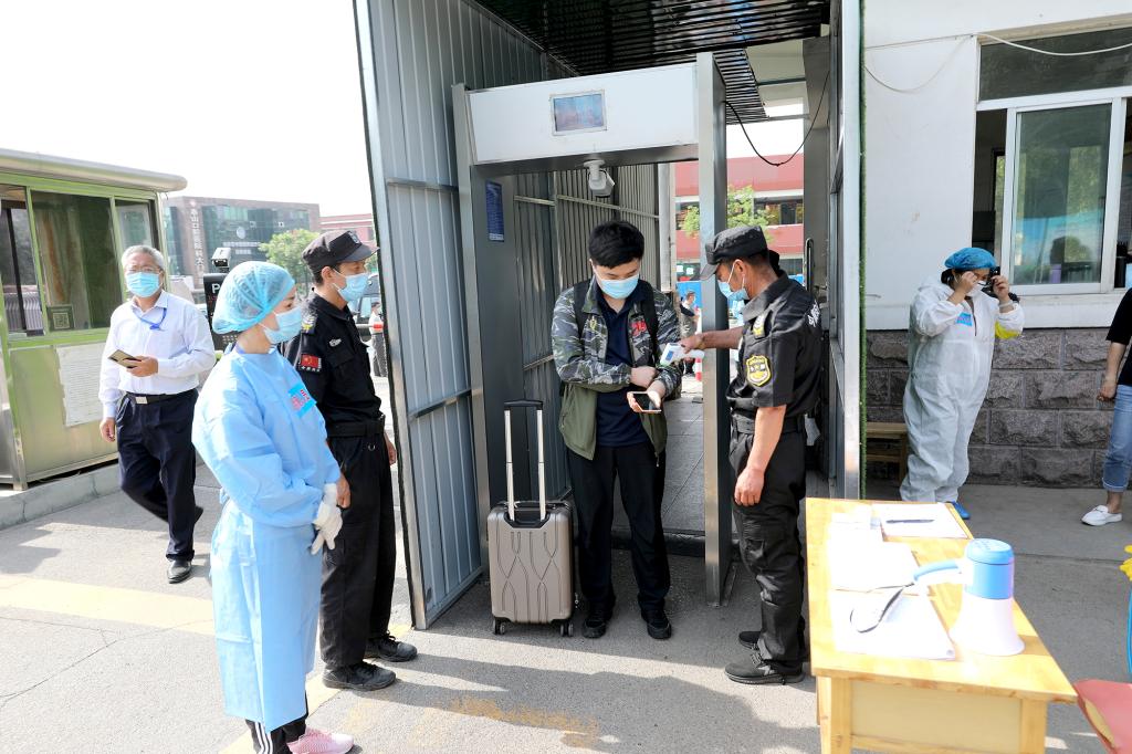 根据安排,返校学生统一由校区南门入校。入口处,由辅导员、相关部门人员组成的工作队伍有序迎接返校学生的到来。返校学生沿规划路线间隔1.5米依次排队等候,按照入校流程,进入学校。