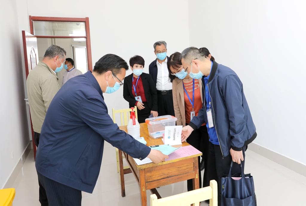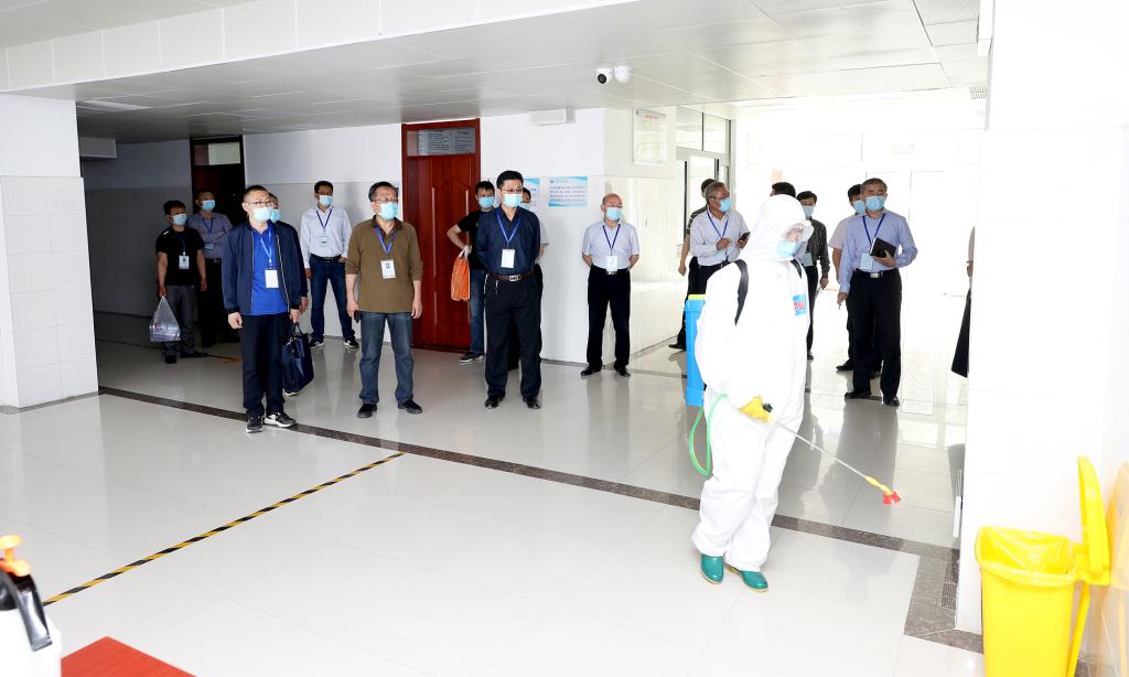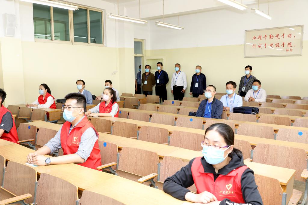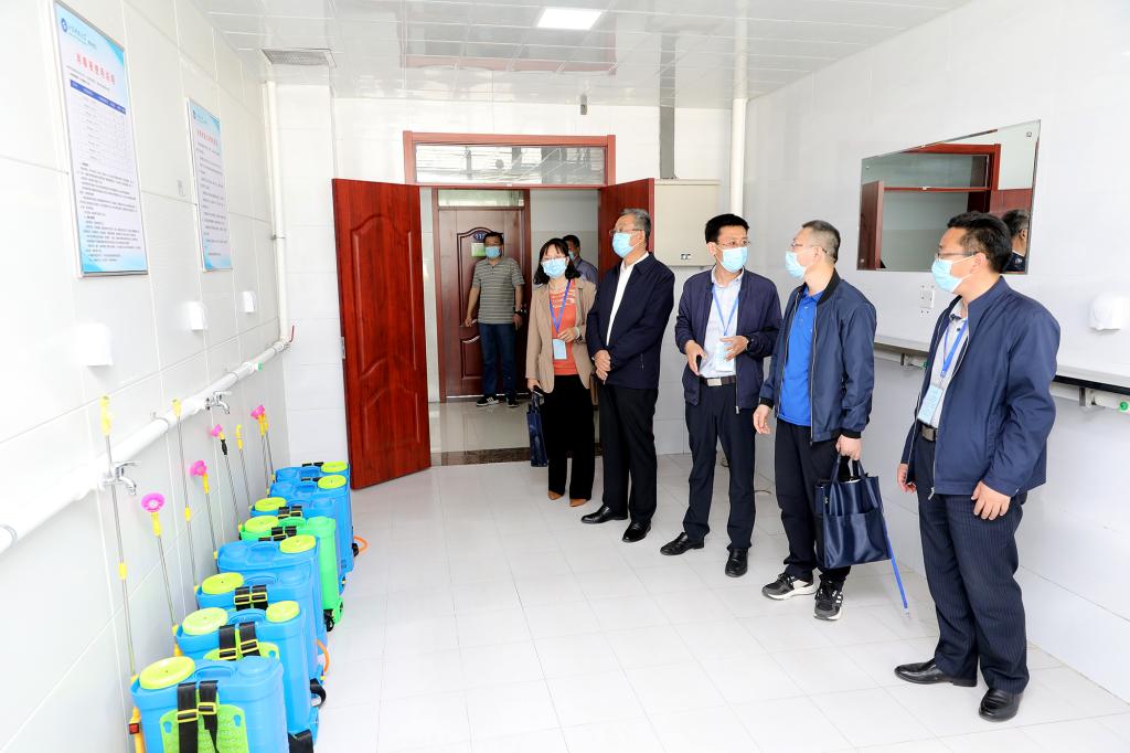 核验督查组现场观摩了学生返校疫情防控应急处置演练。演练人员演示了学生返校进入校园的检测查验、返校核验过程中体温异常学生的处置、临时留观点对体温异常人员进行体温重测、启动应急处置、体温异常人员的转运、临时留观点消毒、密切接触者隔离观察、开展心理辅导、食堂就餐、日常消杀、教室上课、学生宿舍楼消毒及宿舍内学生个人日常防护等多个场景。经过前期八次全程演练,演练人员熟知应急处置流程规范,大家分工明确、反应迅速、处置高效、协调有序,以良好的精神面貌圆满完成演练任务。
