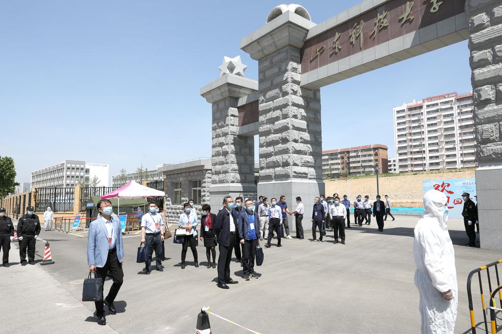 核验督查组实地查看了东、西校园出入口、教学楼、学生公寓、学生餐厅、校医院、留观区、国家工程实验室、模拟矿井等场所。通过查阅资料、随机访谈等方式,围绕《山东省高等学校2020年春季学期开学条件核验细则》具体内容,对学校开学准备工作逐项、逐条进行核验,对组织体系和工作机制、方案制定、制度建立、全员培训、应急处置、全面排查、物资保障、清洁消毒、隔离区域、餐饮管理、错峰返校、校园出入管理、教学准备等要点进行了全面核查。