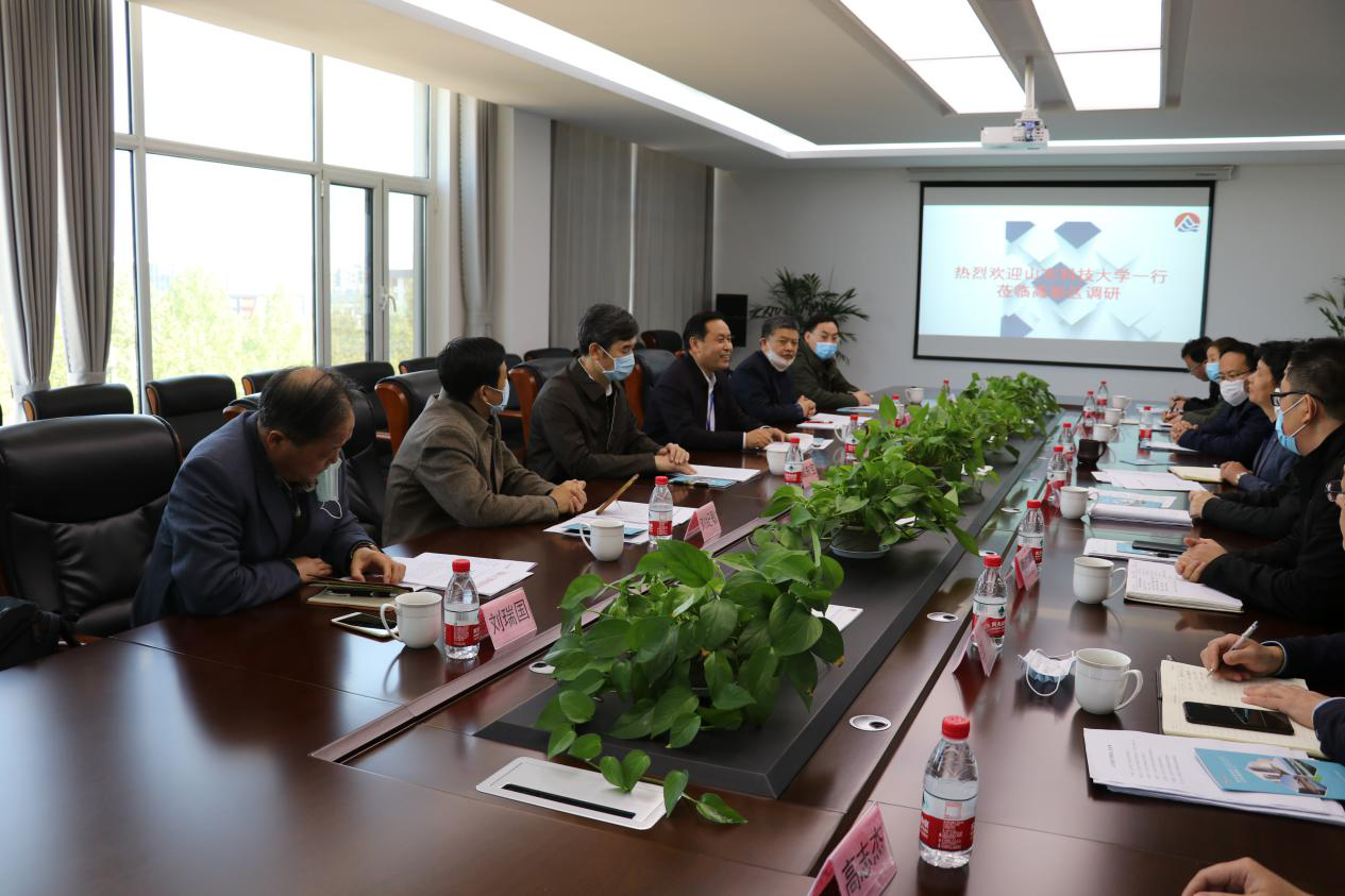 座谈会上,王海涛对调研组表示欢迎,介绍了泰安市高新区概况。作为国家级高新区,区内高科技企业众多,已形成输变电设备、高端装备制造、汽车及零部件、现代物流等主导产业,对人才、技术、科研服务等求贤、求知若渴。目前,有众多科大毕业生在区内工作创业,以尤洛卡、力博重工、众诚电子、华硕能源等为代表已成长为行业龙头企业。高新区着力推动信息技术、电子商务、生物医药、新能源、节能环保等新兴产业发展,迫切需要与科大等驻泰高校在“学生毕业留泰安、技术转化落泰安、人才吸引进泰安”等方面开展全方位合作,形成高校支持地方发展建设,地方助推校企合作共赢局面。