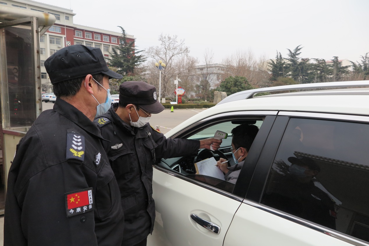 疫情防控,除了摸排清楚教职工及家属情况外,更重要的是把好校园及家属院的出入口。安全管理部关闭了部分校门,在开放的校门口设立检查岗和警示牌,禁止非校内人员进入校园及家属院,对进出的车辆和人员予以登记,用红外线测温仪测量体温,体温正常者方能进入。