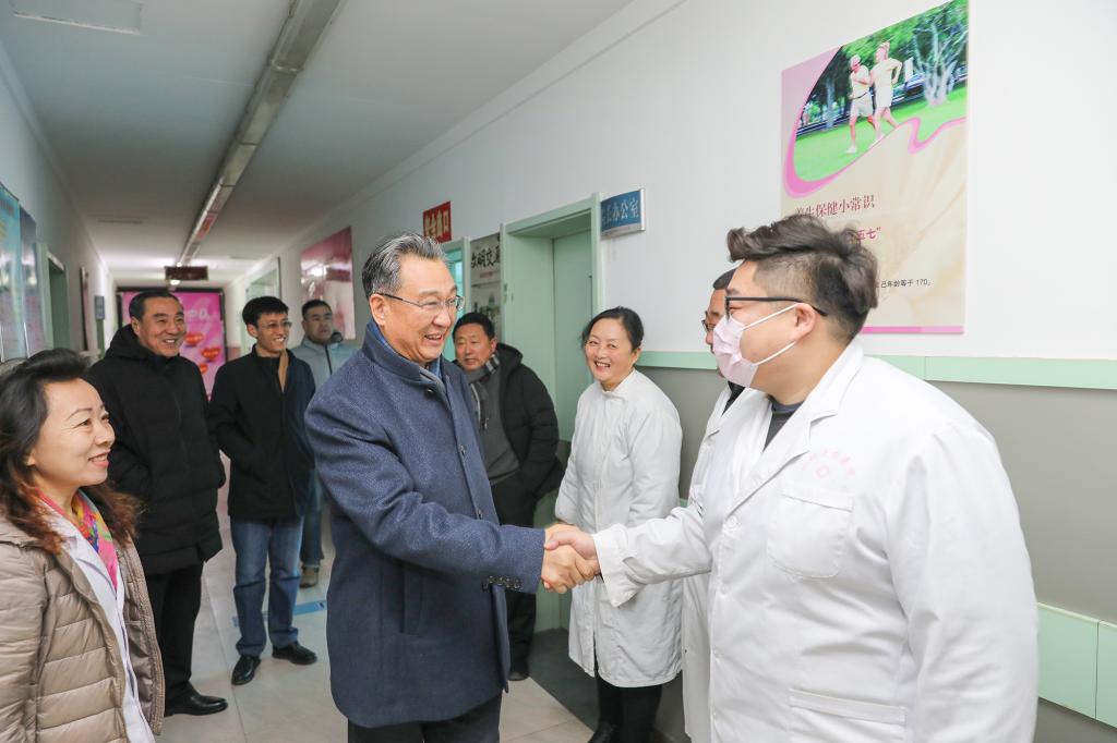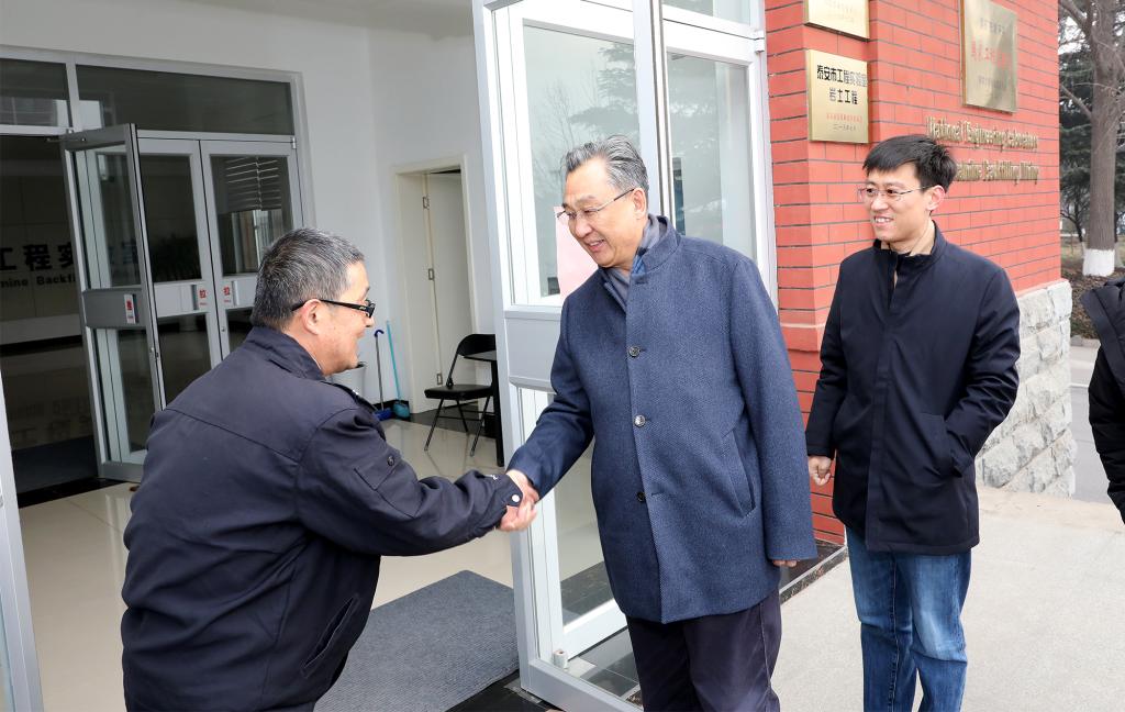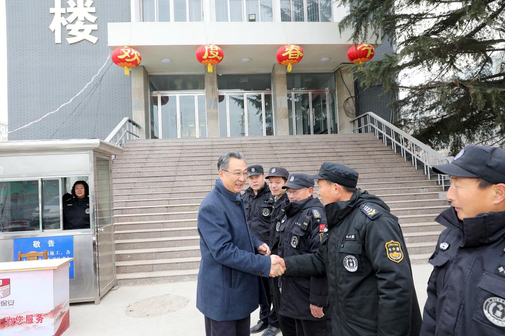 王少鹏一行先后到校医院、水电暖管理中心、教学楼、图书馆、门卫等处看望了春节期间值班的工作人员。每到一处,王少鹏与值班人员一一握手、亲切交谈,向大家致以节日的问候和诚挚的祝福,对大家的默默付出表示衷心感谢,希望大家继续发扬新时代泰山“挑山工”精神,以高度的责任感切实做好春节期间的值班备勤和后勤保障工作,共同营造平安、幸福、祥和的节日氛围。