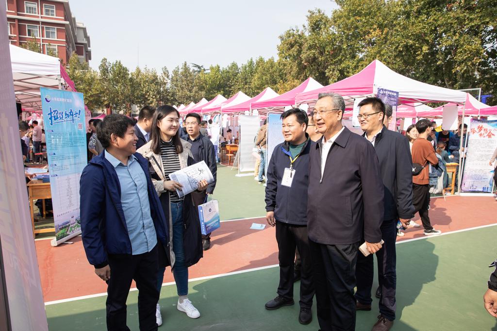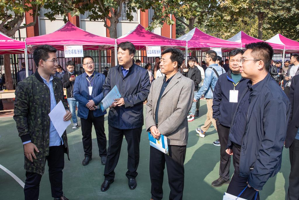 10月20日,山东省2019年高校毕业生就业集中招聘活动(综合类)暨3044永利集团官网(泰安)毕业生供需见面会在泰安校区体育场举行。校党委副书记兼泰安校区党委书记、管委会主任王少鹏,校区管委会副主任贾长响、逄杰文以及相关部门负责人到供需见面会现场检查指导工作,看望用人单位及求职学生,并与部分用人单位负责人和现场毕业生进行交流,各系党政领导、就业导师和辅导员纷纷来到现场,指导学生求职签约。