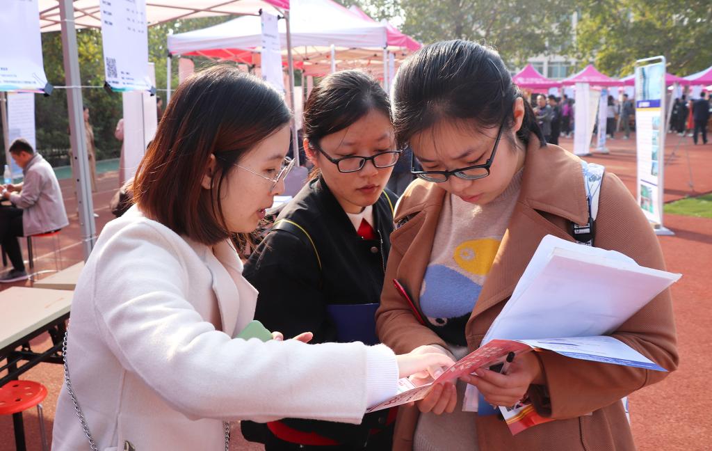校区主动对接泰安市人社局,借助地方人社局平台和人才交流市场,积极邀请泰安市“三强”企业和优质企业参加集中招聘活动。此外,还通过“第一书记”等建立的关系,联系各市县组织用人单位“组团参会”,如联系德州市人社局组织了当地26家单位前来招聘,联系惠民县组织了7家单位前来参会。同时,主动与山东农业大学、山东第一医科大学、泰山学院、山东财经大学东方学院、泰山职业技术学院、山东服装职业学院等驻泰高校就业部门联系,邀请学校就业指导老师和学生来校参会,共享集中招聘活动成果。