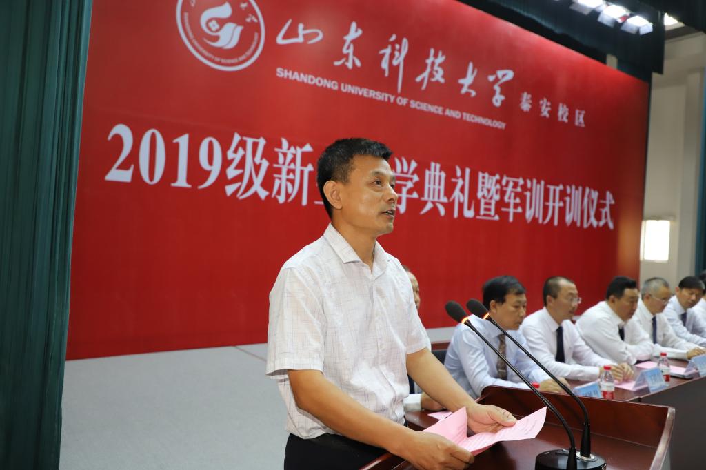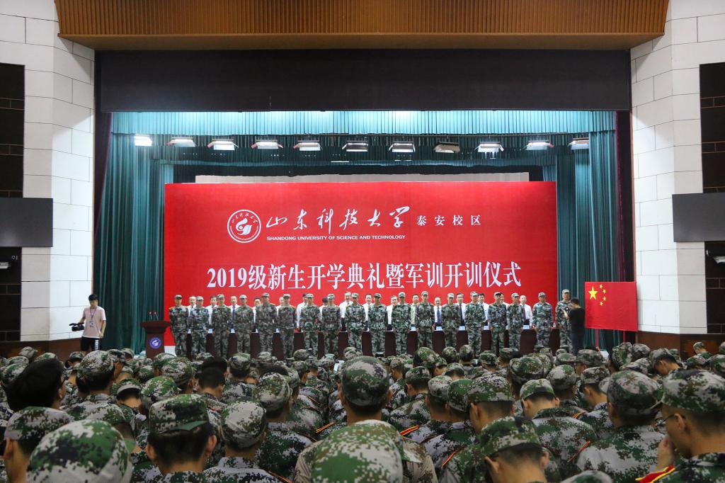 九月的泰城,晴空万里,秋风习习。9月3日,3044永利集团官网泰安校区2019级新生开学典礼暨军训开训仪式在西校园隆重举行。校党委书记罗公利,校长姚庆国,校党委副书记兼泰安校区党委书记、管委会主任王少鹏,军训承训部队江守栋中校,校区领导、校区各部门各单位主要负责人出席典礼并在主席台就座。典礼上,罗公利向军训团授旗,姚庆国讲话,江守栋作军训动员,校区管委会副主任贾长响宣读2019级新生军训决定。典礼由党委学校办公室主任徐方全主持。