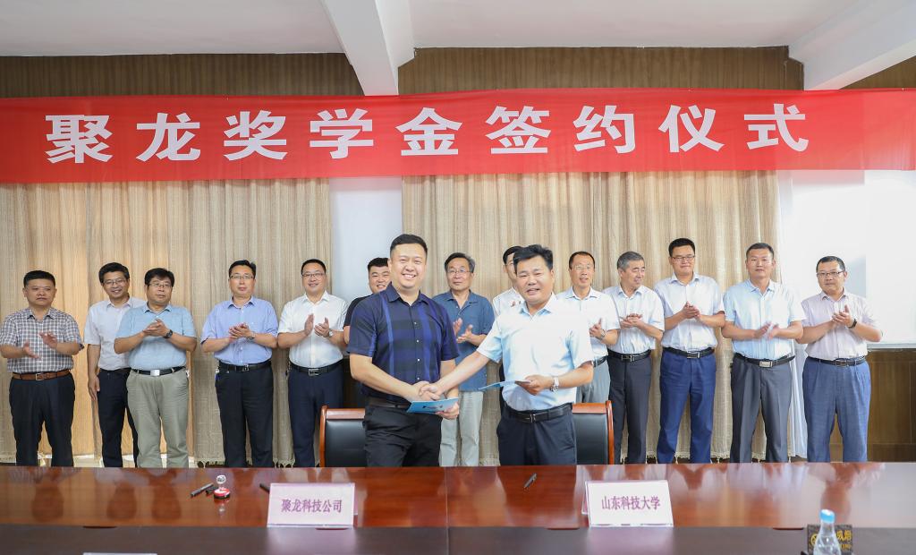 6月10日,校区 “聚龙奖学金”签约仪式在201会议室举行。2011届校友,聚龙(山东)互联网科技有限公司董事长任松、总经理张恒、执行总经理郭延吉,校区、学院党委副书记王民,校区管委会副主任、学院副院长贾长响,教务部、学生处、团委有关人员,各系学生工作负责人出席签约仪式。签约仪式由学生处处长黄德杰主持。