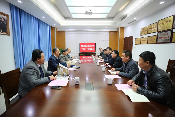 4月11日,校党委副书记兼泰安校区党委书记、管委会主任王少鹏,校区管委会副主任逄杰文,离退休处党委书记张光福等一行到山东泰安建筑工程集团有限公司调研。山东泰安建筑工程集团有限公司党委书记、董事长亓玉政,校友、总经理张东宁,副总经理苏国等接待了王少鹏一行。