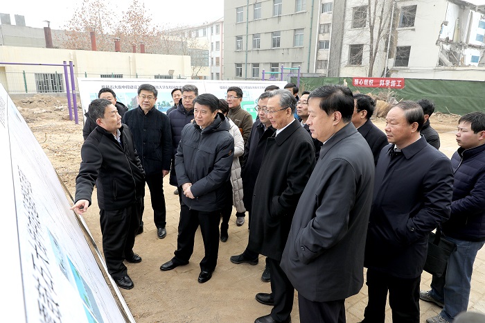 在王少鹏等的陪同下,崔洪刚一行首先到擂鼓石大街拆建现场,了解工程规划、前期准备及目前施工情况,并对工程的进展提出了指导意见。