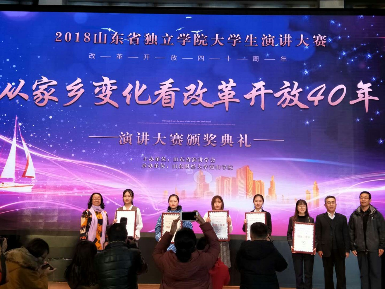 本次大赛由山东省演讲学会主办,围绕“从家乡变化看改革开放40年”这个主题,旨在引领大学生深情回望改革开放给家乡面貌带来的巨大变化,深刻感受党领导中国人民改革开放四十年所取得的伟大成就,激励青年学生不忘初心、牢记使命、砥砺前行,以更加积极的心态、更加主动的姿态,拥抱新时代、投身新时代、建功新时代。比赛设一等奖3名,二等奖7名,单项奖5名。