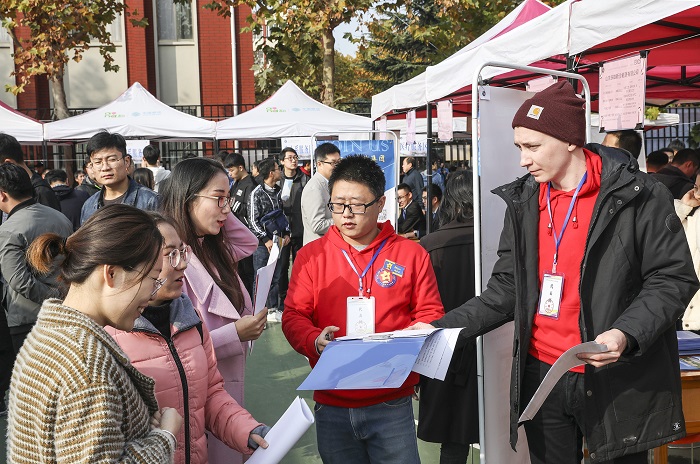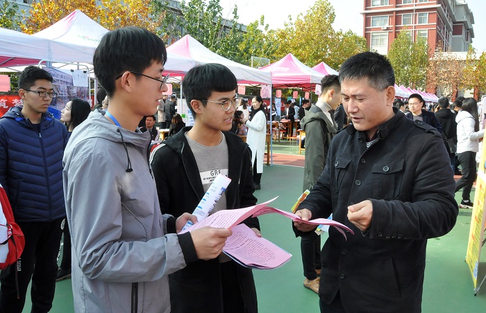 校领导与招聘人员亲切交谈(图:任卫兵)