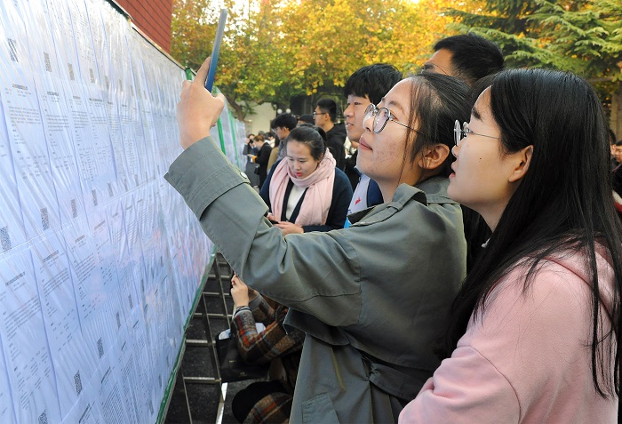 毕业生扫二维码了解用人单位信息(图:张旭)