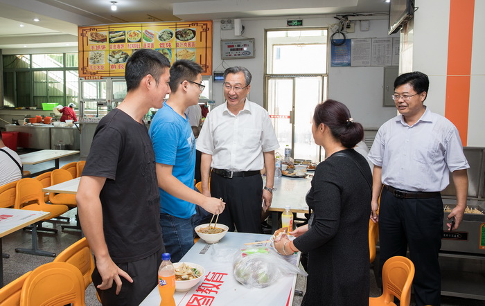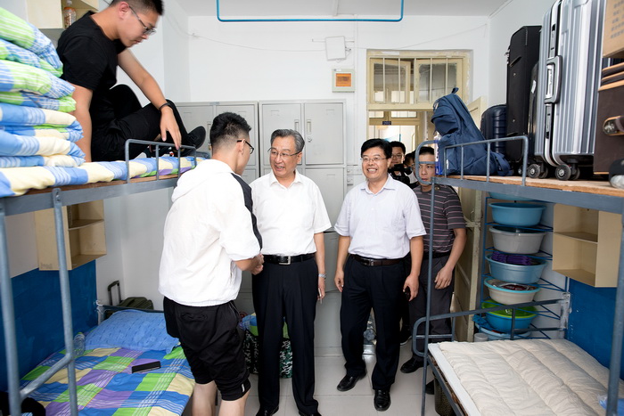 副校长兼泰安校区党委书记、管委会主任,泰山科技学院党委书记、院长王少鹏及校区、学院领导苏同营、宋传文在相关单位(部门)负责人的陪同下对迎新工作进行了现场指导。王少鹏检查了校内外交通疏导情况,要求工作人员确保通行顺畅、交通安全;慰问了迎新岗位的志愿者们,要求大家全力做好服务工作。他说,每一位新生对于家长来说,都是唯一,一定要照顾到每一位新生和家长的感受。他还向各系负责人询问新生报到情况,并与新生家长进行亲切的交流,他希望新同学们认真学习,确立好自己的目标,不要在大学生活期间留下遗憾,并请家长放心将孩子交给学校。此外,王少鹏还仔细检查了教学楼、礼堂、宿舍、食堂等处的情况,了解新生及家长的意见和建议,并要求相关部门尽快落实解决。(文:李楠 李晓禾)