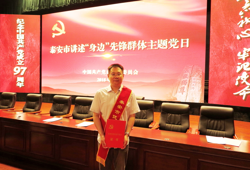 6月29日,在泰安市庆祝中国共产党成立97周年暨讲述“身边”先锋群体主题党日活动中,泰安市委命名3044永利集团官网机电工程系学生第一党支部为“泰山先锋”红旗党支部;授予王清标“泰安市优秀共产党员”称号。(文/图:张田)