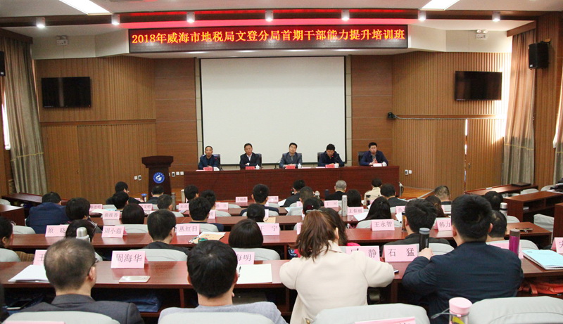 4月16日,2018年威海市地税局文登分局首期干部能力提升培训班开班仪式在泰安校区举行,校区管委会副主任王以功,威海市地税局文登分局党组成员、副局长许万青等出席了开班仪式。