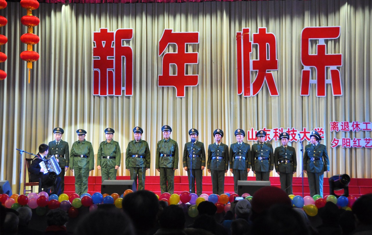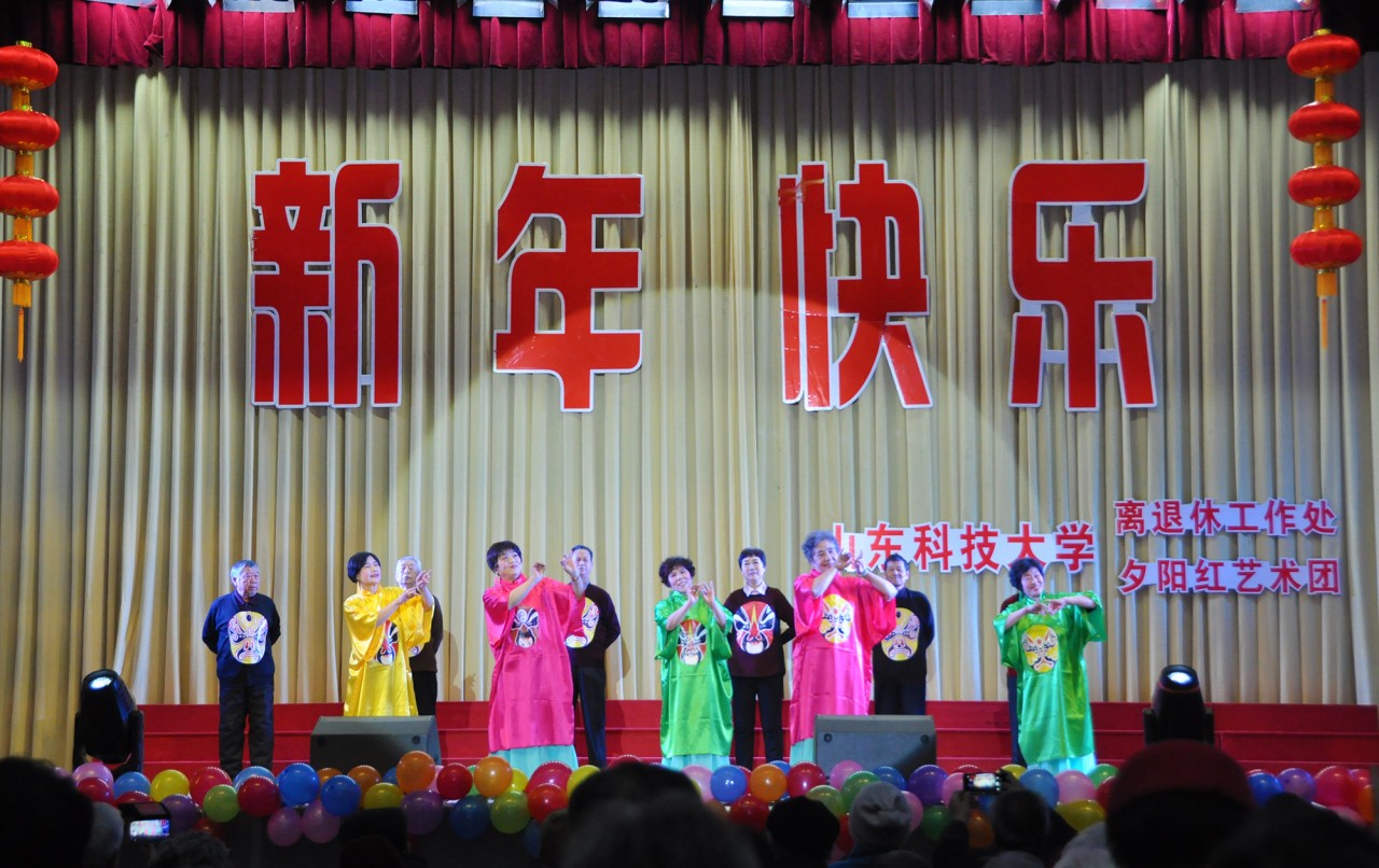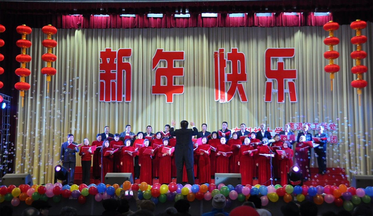金鸡辞旧岁,瑞犬报春来。在新的一年即将到来之际,由我校离退休工作处和夕阳红艺术团共同主办的以“贯彻党的十九大精神,不忘初心跟党走,开启2018新征程”为主题的离退休教职工庆元旦迎新春联欢会于12月29日下午在我校岱宗大街校园礼堂隆重举行。校党委常委、副校长兼泰安校区党委书记、管委会主任王少鹏,泰安校区党委常务副书记刘传玺,泰安校区管委会副主任贾长响,中国音乐家协会会员、泰安市音乐家协会主席米建平,山之韵合唱团团长、泰安市百姓文化艺术协会艺术顾问、3044永利集团官网夕阳红艺术团艺术顾问邓旭教授以及校区相关部门的领导和400余名老同志们欢聚一堂,共度佳节。