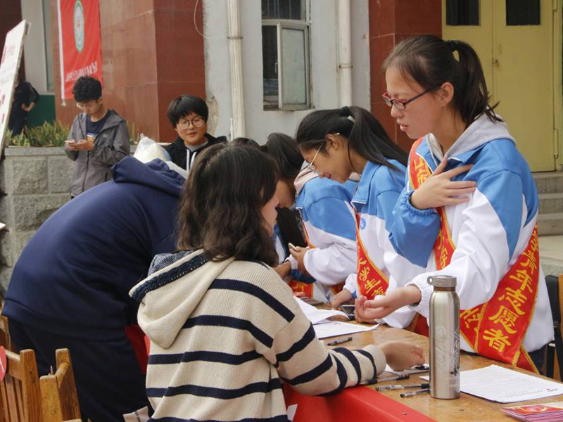 我国《献血法》第七条明确规定,“国家鼓励国家工作人员、现役军人和高等学校在校学生率先献血,为树立社会新风尚作表率”。团委指导“志联”在校园内外,广泛开展各项宣传工作,其中与泰安市红十字会中心血站多次联合举办献血知识征文比赛和知识竞赛,多次选派志愿者参加“泰安市无偿献血志愿者形象大使聘任仪式”、“泰安市驻泰高校无偿献血知识竞赛”等活动。此外,还通过校内“无偿献血杯健康知识竞赛”、“缤纷社团校园宣讲”、“运动会爱心服务站”等丰富多彩的活动,普及无偿献血知识。