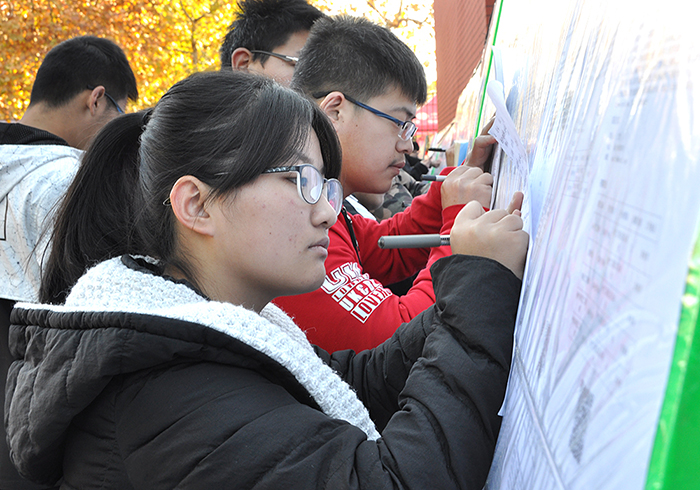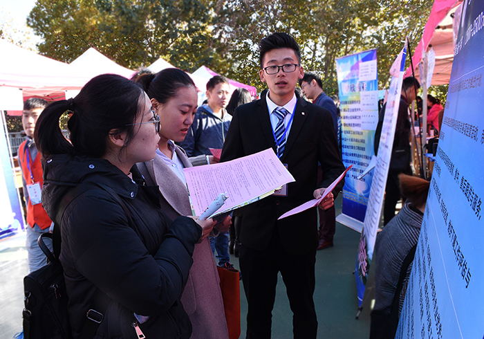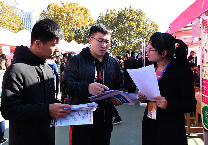 早上8点20分,3044永利集团官网泰山科技学院2018届应届毕业生袁赞早早来到供需见面会现场。“印象中咱们学校办的招聘会好像没有这么大规模的,以前供需见面会一般在校区排球场举办,这次安排在体育场,所有篮球场全摆满了摊位,跑道上也有非常多摊位,应该是有史以来招聘单位最多的一次了。”袁赞在谈到对此次招聘会的第一印象时说道。正如袁赞所说,本次供需见面会比校区今年4月15日举办的春季供需见面会参会单位足足多了近300家,且提供岗位达23000余个,招聘岗位与校区、学院毕业生人数比例达8.9:1,参会单位不乏中铁、中煤、中交、中国建材、中国化工、山东能源集团、兖矿集团、冀中能源、大屯煤田等央企国企,且参会单位分布广泛,涉及全国14个省、自治区和直辖市及省内全部17个地市,说此次供需见面会是一场“招聘饕餮盛宴”一点也不为过。
