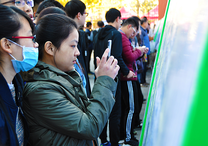 供需见面会前两天,一封《致2018届毕业生的一封信》在师生间流传开来。“内容我仔细看了,1000字左右,既丰富又精练,很‘走心’,特别是求职简历制作中的“30秒读懂”原则让我印象深刻,对毕业生参加这次供需见面会包括今后的就业都有很大的指导意义。”2018届毕业生就业导师郭凡灿在谈到这封信时说。而实际上,在校区“一封信”这样的对毕业生进行就业指导与服务过程中的“走心”举措还有很多。据了解,作为泰安校区发展的重要任务,校区就业工作始终坚持以“学生满意、用人单位满意”为宗旨,在对毕业生就业指导方面,校区构建了就业指导全程化、就业服务人性化、信息推送精准化、就业指导分类化的“四化”就业指导体系。在此次供需见面会现场,记者看到,近20块用人单位招聘信息展板前和用人单位就业信息“二维码墙”前围满了前来应聘的毕业生。据了解,为方便毕业生精准了解参会单位情况,校区为每个报名单位的就业信息网页制作了二维码,学生通过手机扫码就可以了解所关注单位的基本信息、用人需求。而早在本次供需见面会前,用人单位的信息就已经在校区就业信息网、“山科大泰安就业指导中心”微信公众平台、“山科大泰安18届求职群”QQ群及各系就业群第一时间发布给同学们了,而且参会单位信息每天都会实时更新,毕业生可以随时了解到供需见面会的参会单位更新情况。此次供需见面会校区2018届毕业生赵航显然是有备而来,早上9点,赵航来到供需见面会现场,他没有在其他招聘单位前驻足,而是凭借事先在网上查到的招聘摊位号直奔内蒙古上海庙矿业公司的招聘摊位前,经过初步面试很快达成了就业意向。“我家在内蒙古,毕业后想回家乡发展,在招聘会前看到学校发布的用人单位信息中有内蒙古这家企业,了解到待遇还不错,就通过学校就业信息网上的电话提前进行了接触,来现场与单位进行了进一步交流,彼此都挺满意,下一步我就准备签约了。”赵航笑着对记者说。此次供需见面会校区把用人单位报名参会时间截止到供需见面会前一天的晚上,这方便了用人单位,却也为供需见面会的前期布置增加了不小的难度和工作量,在这方面大学生就业创业指导中心主任王心刚感触颇深。“因为参会单位具体数无法确定,后期很多工作就没法开展,昨天加班到凌晨1点,今天早晨5点半又起来布置会场。”王心刚略带疲惫地对记者说。据了解,校区今年在原有的校友招聘专区、泰安市“三强”专区、各系服务指导区、医疗服务区的基础上,又新设了法律服务区,邀请文法系法学教研室老师和大学生志愿者,在现场为用人单位和毕业生提供法律宣传和法律咨询服务。