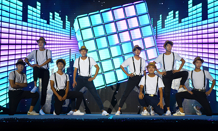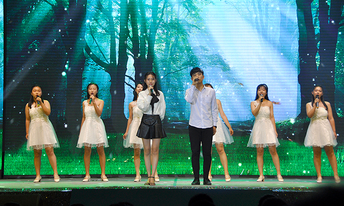 青春绽放,梦想起航。一段充满青春气息的开场舞《SHAKE IT》拉开晚会的帷幕。《不忘初心》、《异乡人》等歌曲,既展现了科大积极昂扬向上的校园文化,又唱出了对青春的绚丽和对家乡的眷恋;《不能忘却的记忆》、《卓玛》等舞蹈,既有大学生青春激情与活力的喷发,也有教工精神风貌的再现;郯城县住建局友情参演一曲《天路》,嘹亮的女高音响彻云霄,引得全场欢呼,掌声雷动,将晚会推向了高潮。