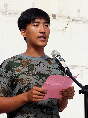 方队风采(图:陈晨) 男子军体拳表演(图:陈晨) 女子军体拳表演(图:杨明凯) 王少鹏赠送锦旗(图:岳增莹) 表彰(图:岳增莹) 苏同营讲话(图:岳增莹) 刘锋宣读表彰名单(图:岳增莹) 黄德杰主持(图:岳增莹) 新生代表任传儒发言(图:陈晨) 新生代表孙梦琪发言(图:岳增莹) 急救演习(图:陈晨) 消防演习(图:陈晨)