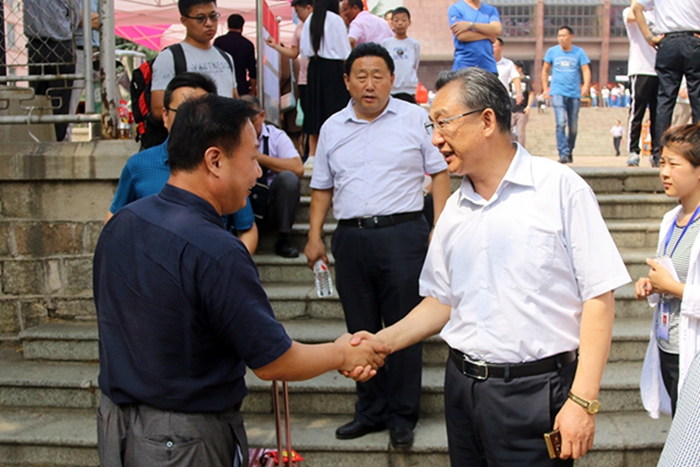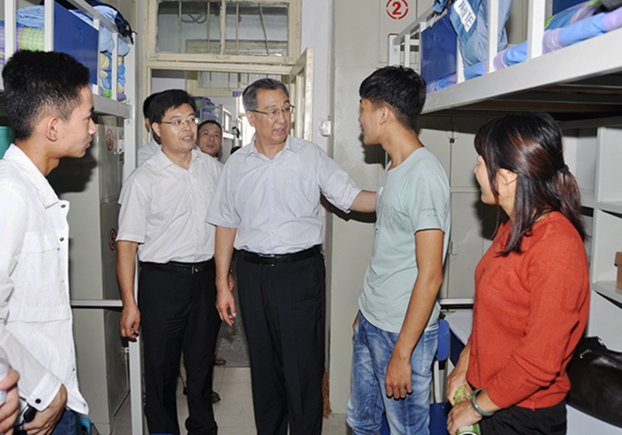 副校长兼校区、学院党委书记,校区管委会主任、院长王少鹏及校区、学院党委副书记苏同营在相关单位(部门)负责人的陪同下对迎新工作进行了现场指导。王少鹏首先检查了校内外交通疏导情况,要求工作人员确保通行顺畅、交通安全。他亲切慰问了在迎新岗位的志愿者们,对他们的辛苦工作给予了充分的肯定。在接待处、新生宿舍、食堂等处,他分别了解了新生报到情况、住宿及餐饮准备情况,并要求有关部门和人员本着安全、方便的原则,迅速解决新生生活中存在的问题和困难。每到一处,他都与新生及家长进行了交流,询问了新生及家长存在的困难和对学校工作的意见、建议。他希望新生来校后迅速进入学习状态,认真规划好自己的大学生活,同学间要团结友爱,相互帮助,共同提高;他请家长们放心,学校和老师们一定会把学生当成自己的孩子,安排好学生的学习和生活。