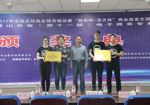 5月5日至7日,2017年全国高校商业精英挑战赛商业信息化创新创业竞赛山东省选拔赛暨第十一届山东省电子商务专业竞赛总决赛在潍坊举行。信息系陈福刚、孙琳老师指导的“BOOM”团队,经管系学生张腾飞、邢欣欣、郭彦汝、孙燕、郭雅菲(指导老师:张策、王备备)团队作品《悠悠我心》,张浩阳、陈潜、李梦瑶、段希廉、范晓萍(指导老师:于雷、周辉)团队作品《泰山宏芝堂灵芝网络营销方案》均获一等奖。其中“BOOM”团队取得创业实战组第一名的好成绩,成功晋级全国总决赛,并在颁奖典礼上作为最优秀团队,向全省参赛团队汇报展示团队参赛方案。褚立鹏、孙瀚政、陆雪文、张婉卿、南瑛团队(指导老师:侯学博、邢志良)的作品《校之友APP》获三等奖,校区被授予最佳院校组织奖,陈福刚、孙琳获优秀指导教师奖,陈福刚被授予电子商务教学名师称号。