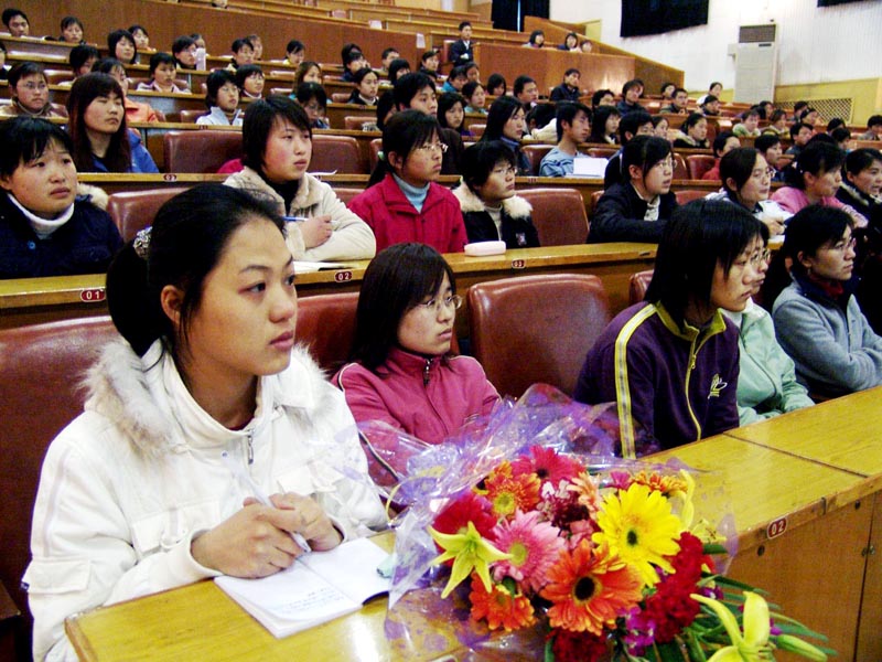 报告会上,周文安教授首先向广大女生致以节日祝贺,他从国际三八妇女节的由来及介绍了21世纪最重要的字——“她”字的由来和发展给同学们讲述了女性在社会生活中地位的不断变化,并结合当今社会发展趋势指出女性将在21世纪发挥更重要的作用;在肯定女性细致、认真、敏感、直觉等优点的同时,他还希望广大女生要自爱、自信、自尊、自强,不断提高自身素质,完善自己,走出迷失自己的心理沼泽;同时还列举了中央电视台“半边天”节目主持人张越、国际名模吕燕、哈佛女孩刘亦婷、勤工俭学的模范石小东、学习与工作的榜样朱军霞、雅典奥运会首枚金牌得主杜丽和《简爱》作者夏洛蒂姐妹等成功的女性代表,并结合目前女大学生存在的一些不良现象,希望广大女同学要学习以上几位成功女性饱满热情的生活态度,摆脱“花瓶”世俗的纠缠,做新世纪的女大学生、新世纪的精英。
