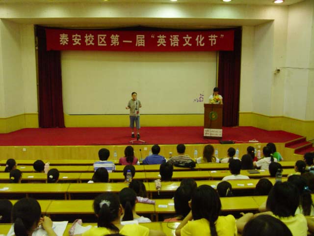 为进一步提高同学们的英语口语水平,提升同学们的英语写作与翻译能力,陶冶同学们的情操,营造良好的英语学习环境,6月1日,由校区团委、学生会举办泰安校区第一届“英语文化节”英语演讲比赛在报告厅举行。校区团委副书记朱景星、公共课部韩苏、倪西军、李家霞三位教师出席比赛并为获奖选手颁奖。