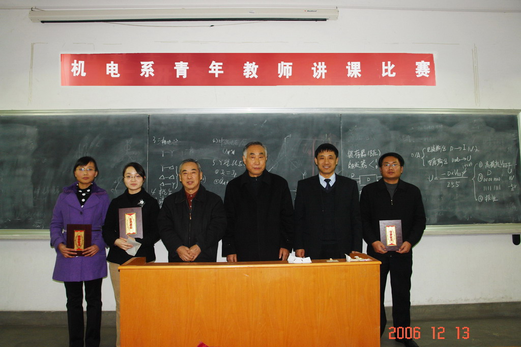 为进一步提高青年教师的讲课水平,检阅实施青年教师导航计划的工作效果,机电工程系结合我校下发的《关于第九届青年教师讲课比赛泰安校区预赛的通知》的文件精神,于12月13日成功举办了首届青年教师讲课比赛。系教学副主任、各教研室主任、参加青年教师教育教学导航计划的青年教师及其指导教师近40人观摩了比赛。