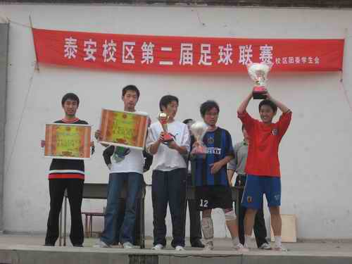 4月27日下午,泰安校区第二届足球赛决赛在信息系与机电系之间举行。最终信息系在点球大战中以5比4战胜机电系,夺得了本届联赛的冠军,机电获得亚军,第三名由资土系夺得。
