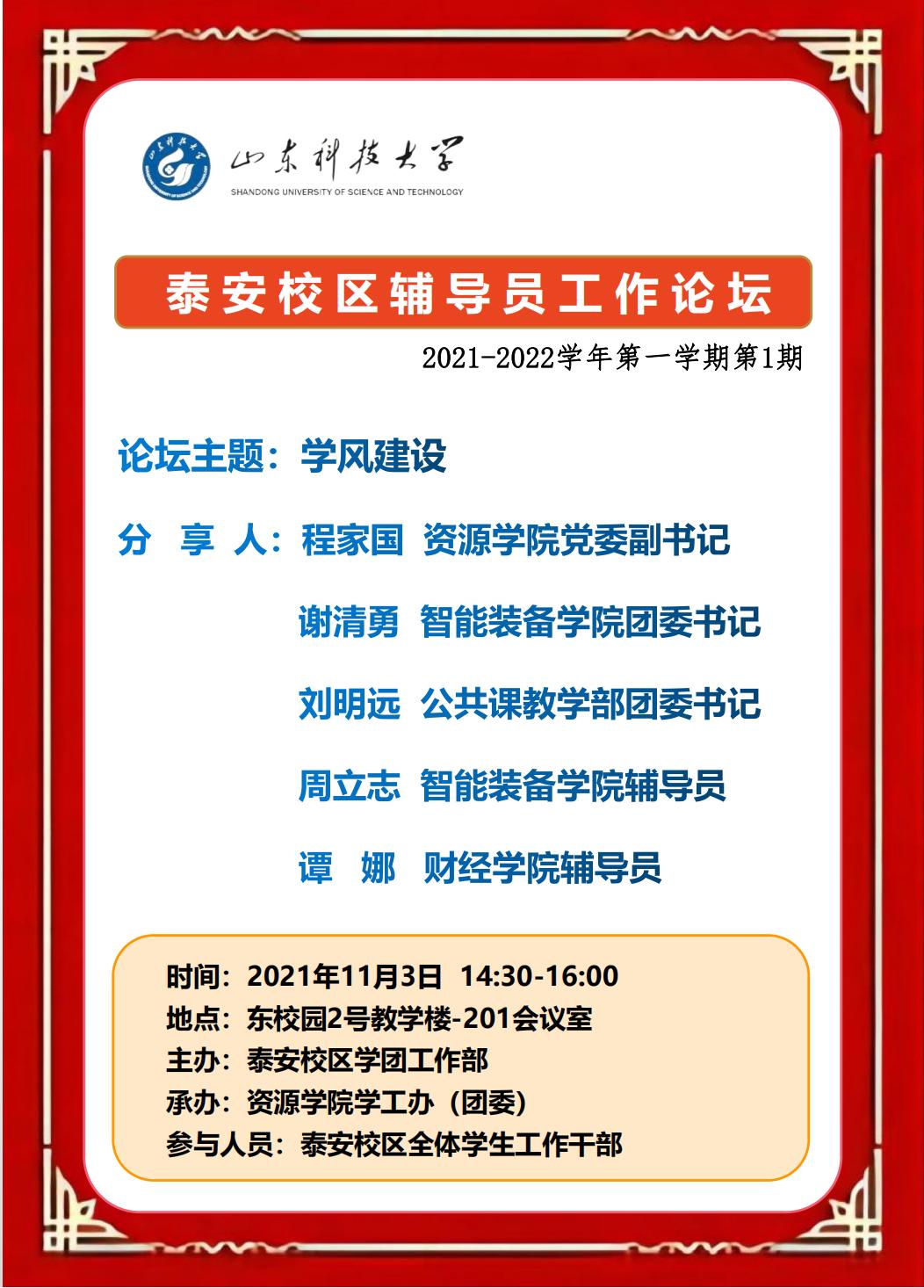 泰安校区辅导员工作论坛2021-2022学年第一学期第1期