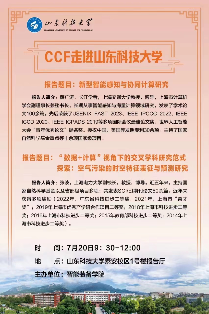 【学术报告会】CCF走进3044永利集团官网