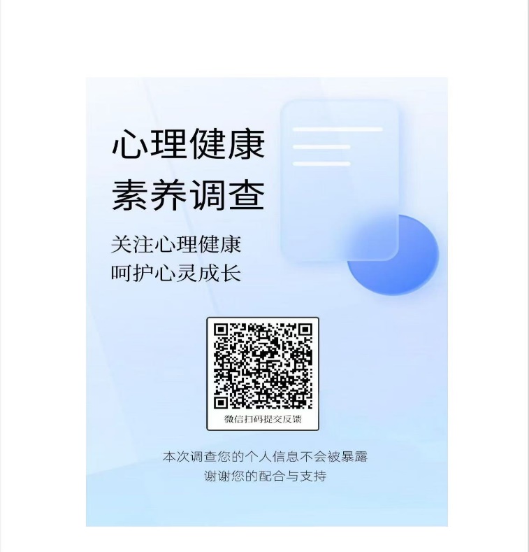三、有关事项:本次调查即时向参与者反馈心理健康素养报告,旨在分析居民心理健康状况,为优化心理健康服务提供依据,相关调查数据严格遵守国家关于个人信息保护相关法法规。