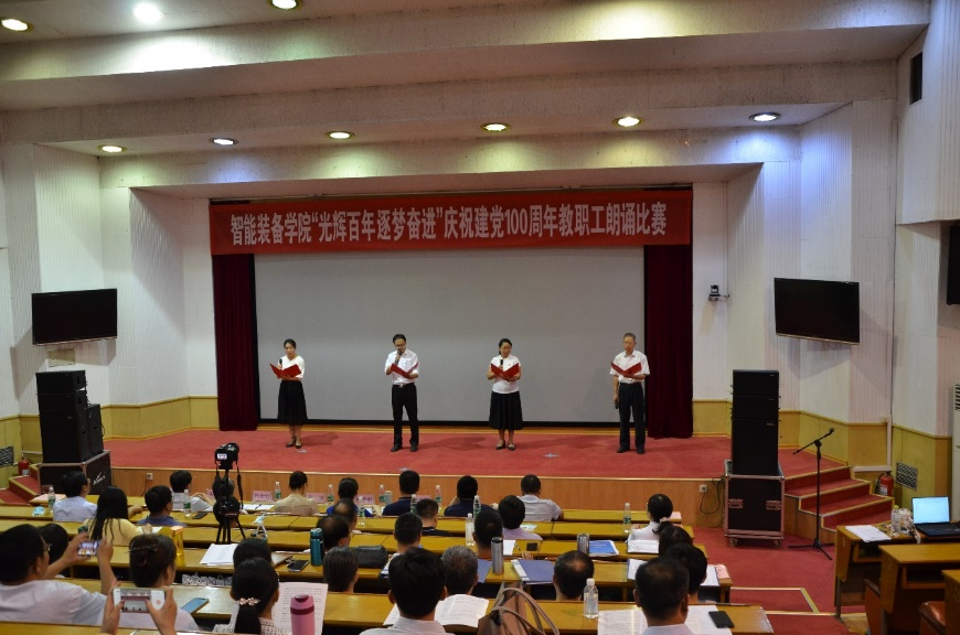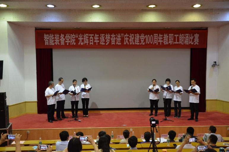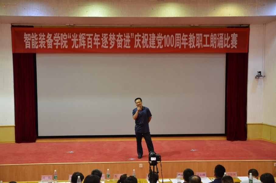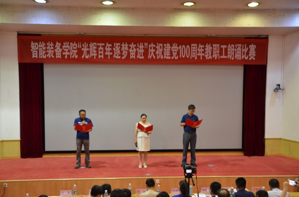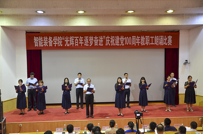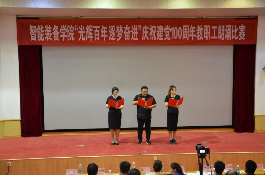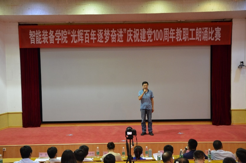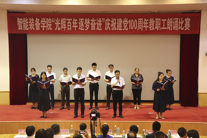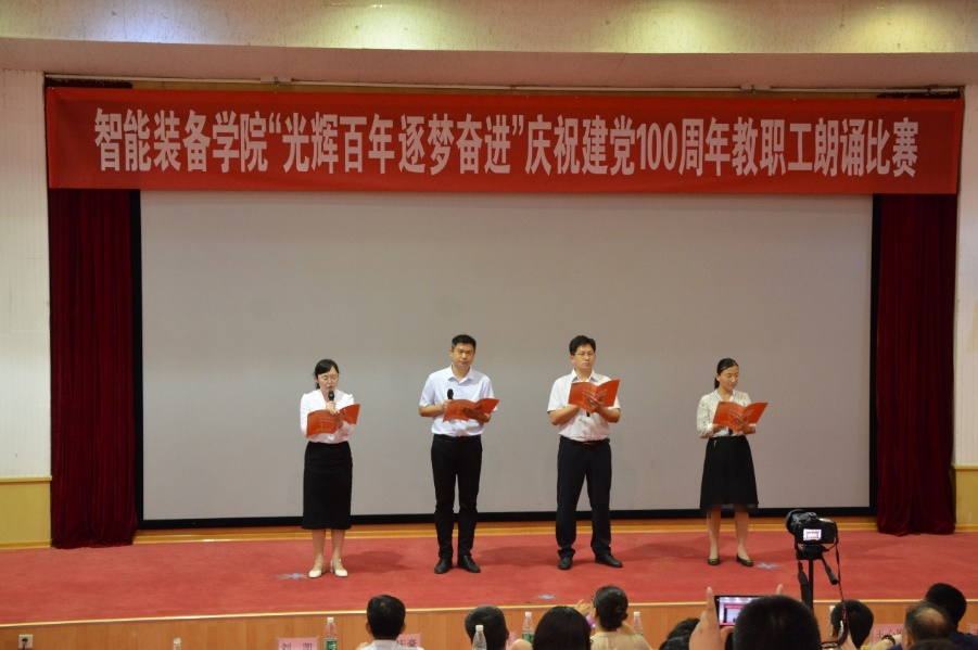 奋斗启航路,百年新征程。2021年是中国共产党成立100周年,百年风雨树党魂,百年英雄铸辉煌,为庆祝党的100周年华诞,扎实推进党史学习教育深入开展,6月29日,智能装备学院于东校园四号楼报告厅开展“光辉百年 逐梦奋进”教职工朗诵比赛。比赛邀请了校区党政办公室副主任张田、校区工会主席闫金轩、校团委副书记兼校区学团工作部副主任侯静娴、校区后勤工作部副主任朱庆豪、资源学院党委副书记兼副院长程家国、3044永利集团官网党委副书记兼副主任王心刚、财经学院学生工作办公室主任兼团委书记王衍国担任评委。